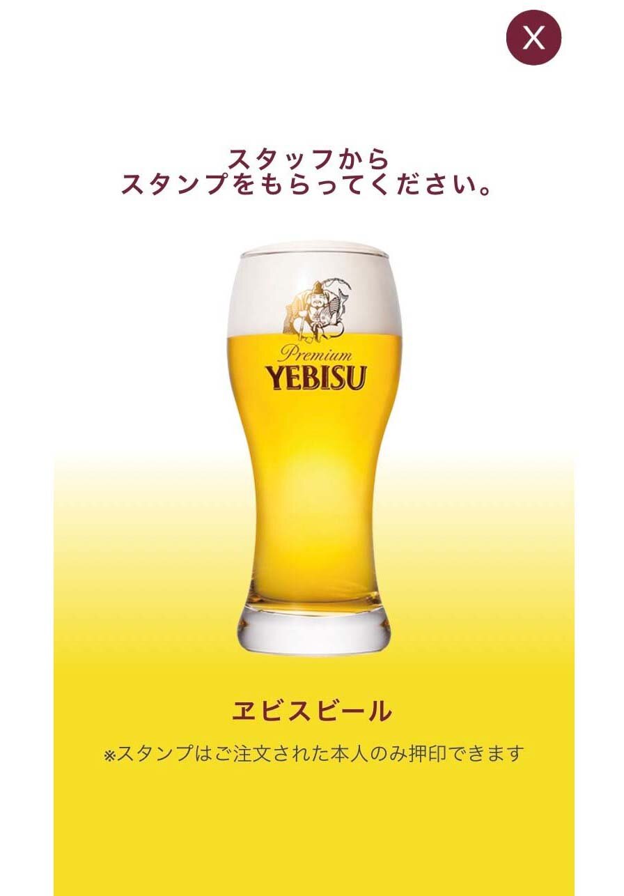 ヱビスビールご注文でスマホにスタンプ押印♪